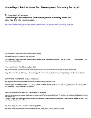 Download Home Depot Performance And Development Summary Example Doc